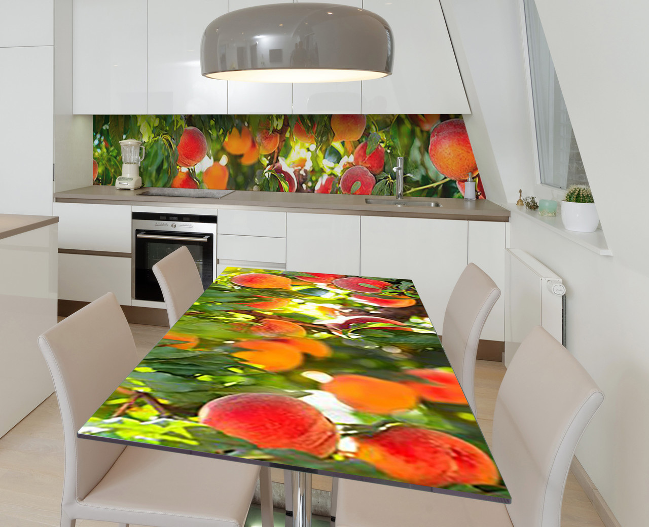 Наклейка 3Д виниловая на стол Zatarga «Сочные персики» 650х1200 мм для домов, квартир, столов, кофейн, кафе