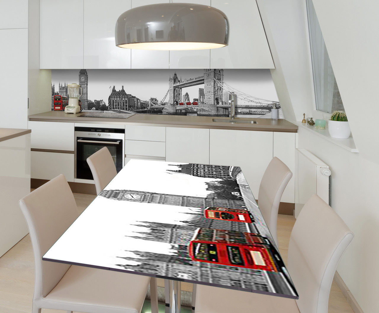 Наклейка 3Д виниловая на стол Zatarga «Лондонский монохром» 600х1200 мм для домов, квартир, столов, кофейн,
