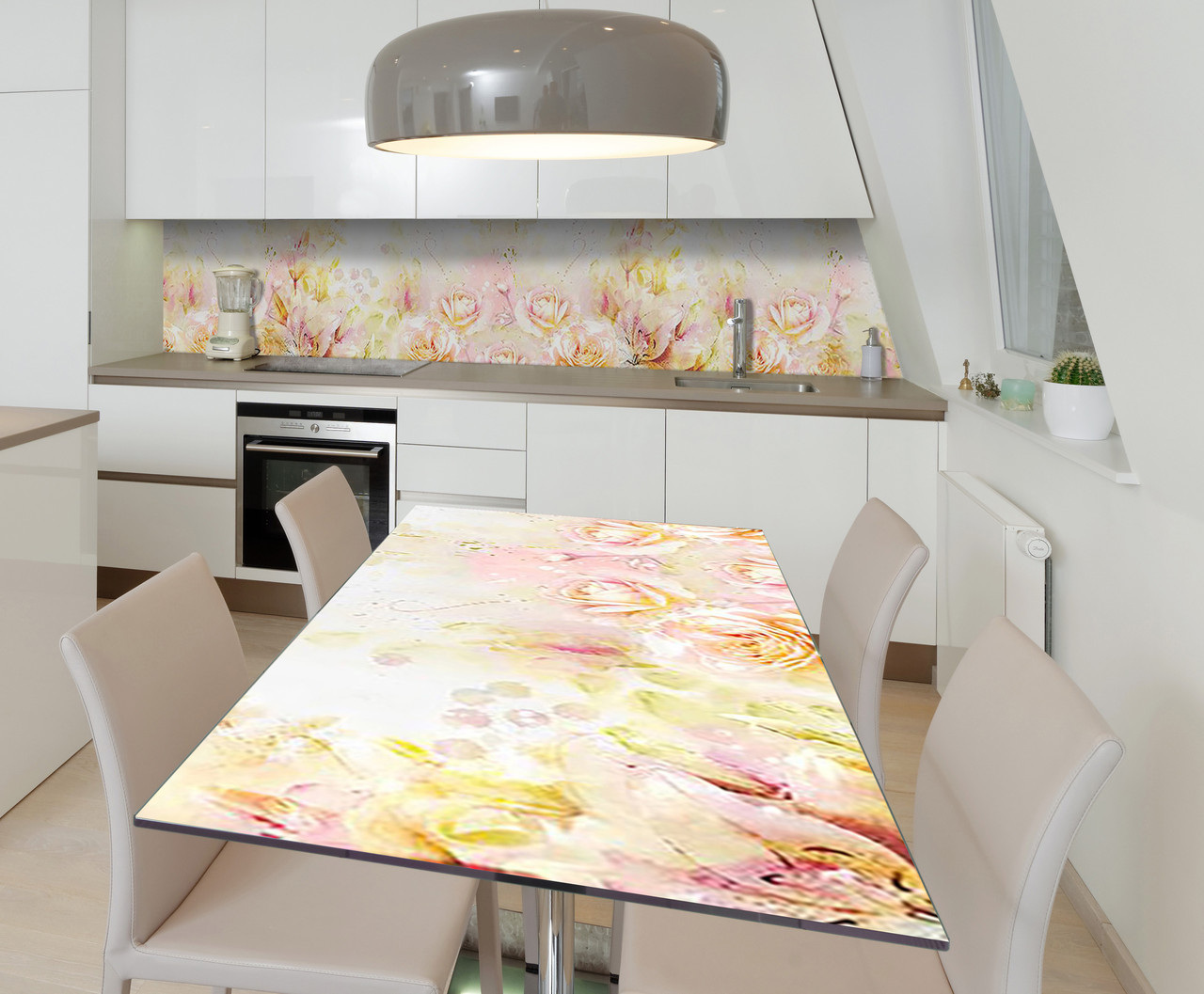 Наклейка 3Д виниловая на стол Zatarga «Фарфоровые розы» 600х1200 мм для домов, квартир, столов, кофейн, кафе