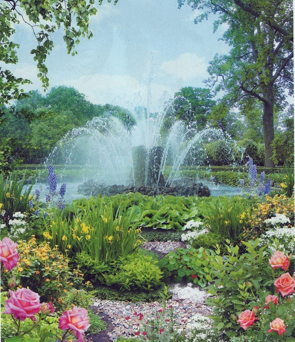Парк з найкрасивішим фонтаном, укутаний яскравими, красивими квітами, а саме, трояндами, айстрами, хризантемами справжня знахідка для власників квіткових магазинів, арт-кафе та ресторанів. Фотошпалери 3Д передають ніжність, аромат, шум бризок, радість птахів і перехожих, що пролітають, справжня мрія для сімейного відпочинку. Фотошпалери Арт Декор Діамантові бризки ефектно виглядатимуть на стіні, приховують будівельні похибки, нерівності, сховають громіздкі дроти, прикрашаючи інтер'єр, знову перероджуючи кімнату.