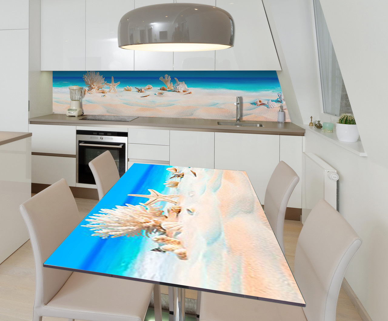 Описание Наклейка 3Д виниловая на стол Zatarga «Мальдивские сокровища» 600х1200 мм для домов, квартир, столов, кофейн,