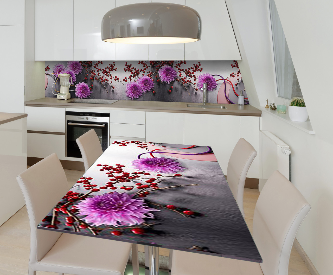 Описание Наклейка 3Д виниловая на стол Zatarga «Ягоды и георгины» 650х1200 мм для домов, квартир, столов, кофейн, кафе