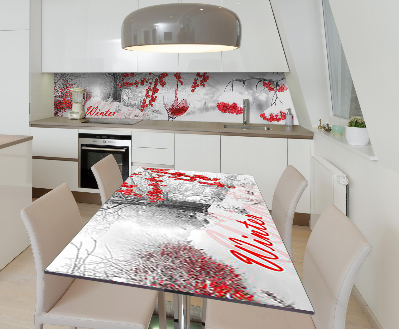 Описание Наклейка 3Д виниловая на стол Zatarga «Алая зима» 650х1200 мм для домов, квартир, столов, кофейн, кафе