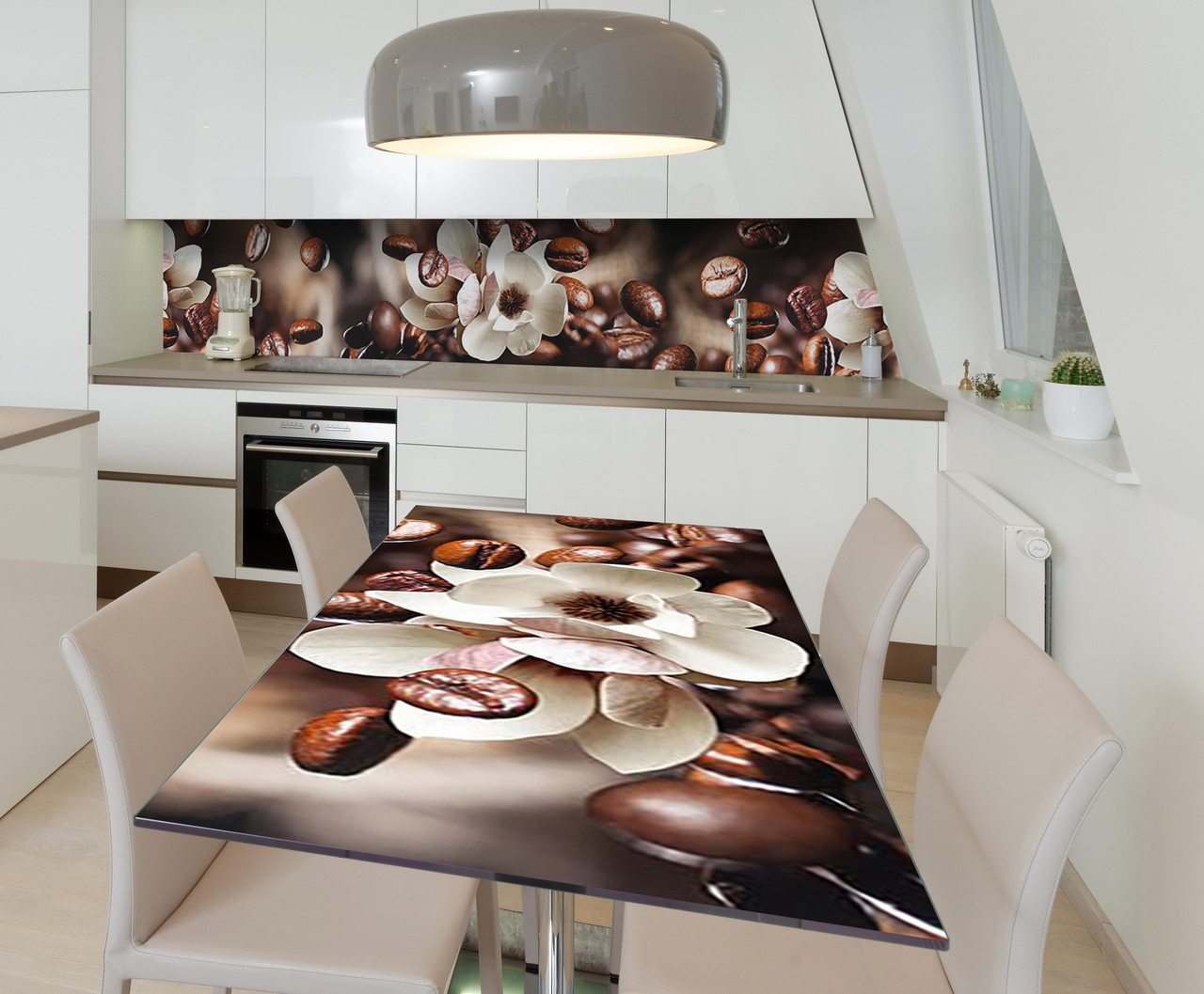 Описание Наклейка 3Д виниловая на стол Zatarga «Падение кофейных зёрен» 600х1200 мм для домов, квартир, столов, кофейн,
