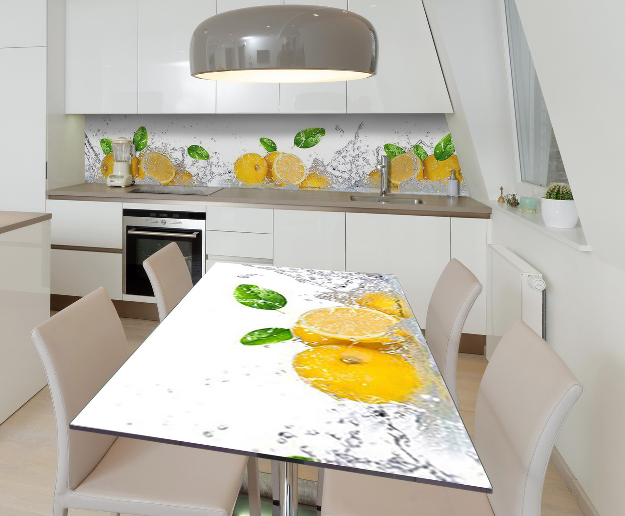 Описание Наклейка 3Д виниловая на стол Zatarga «Брызги лимона» 650х1200 мм для домов, квартир, столов, кофейн, кафе