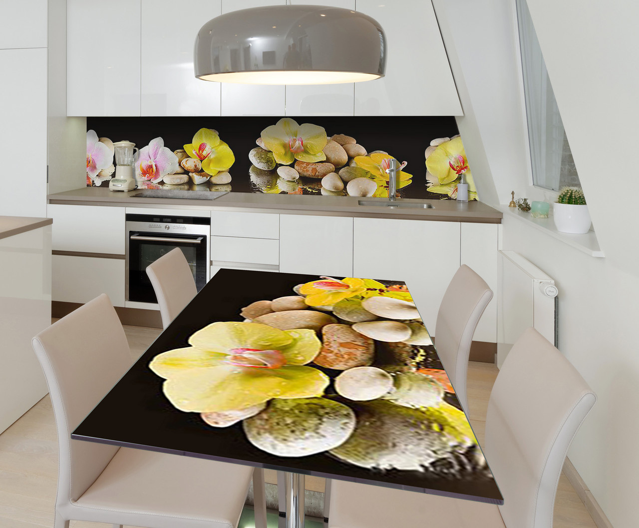 Наклейка 3Д виниловая на стол Zatarga «Орхидеи на камнях» 600х1200 мм для домов, квартир, столов, кофейн, кафе