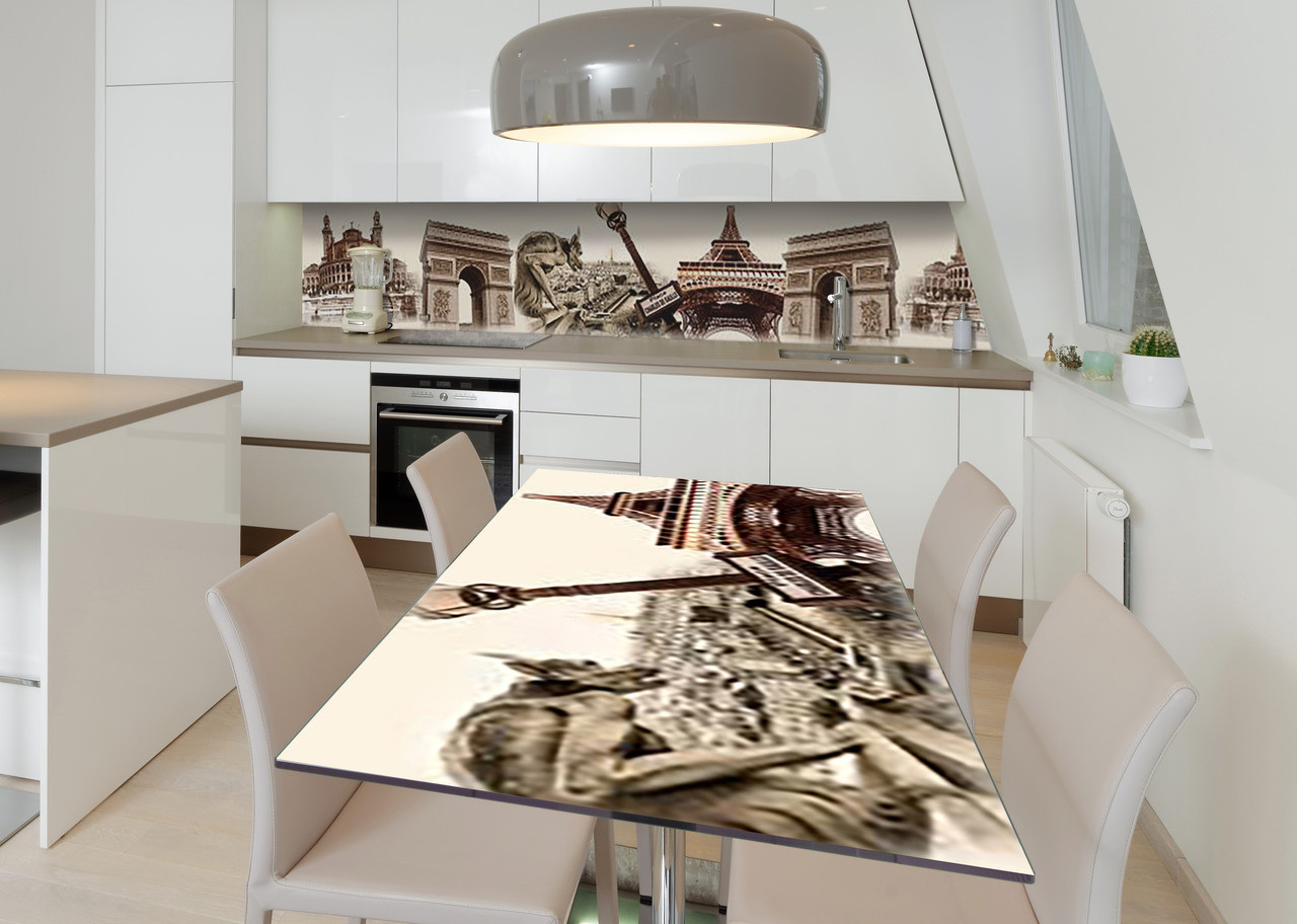 Описание Наклейка 3Д виниловая на стол Zatarga «Тайны парижских крыш» 600х1200 мм для домов, квартир, столов, кофейн,