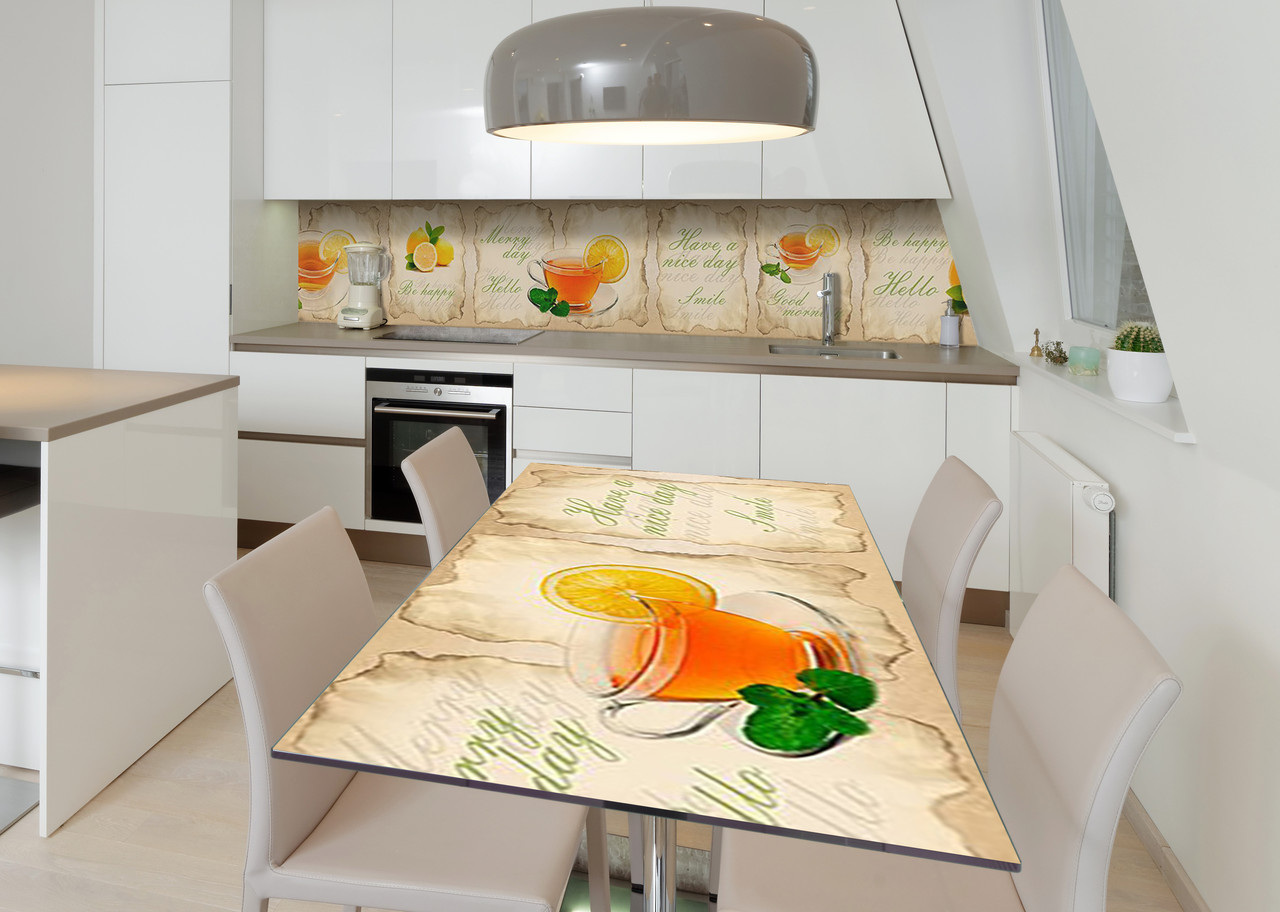 Описание Наклейка 3Д виниловая на стол Zatarga «Чай с лимоном» 650х1200 мм для домов, квартир, столов, кофейн, кафе