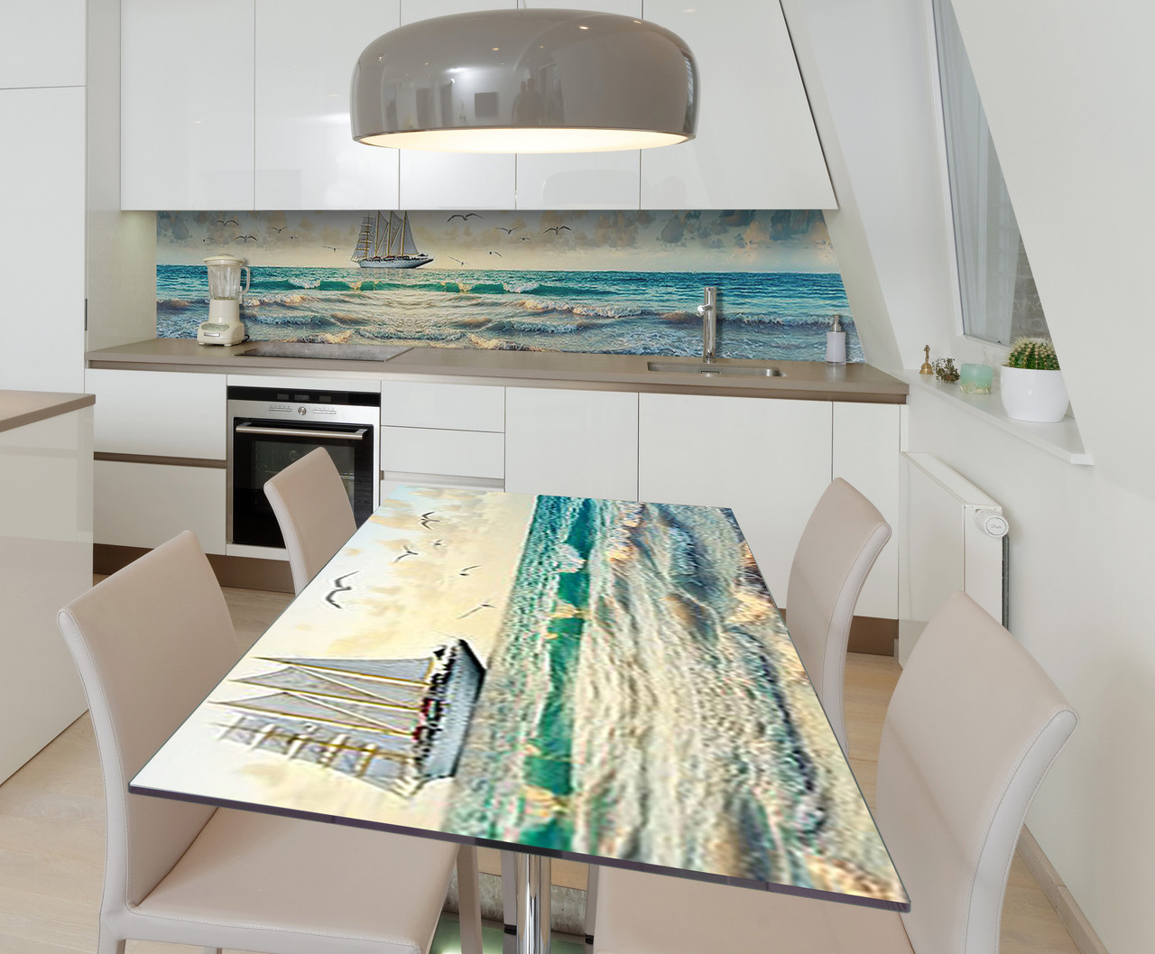 Описание Наклейка 3Д виниловая на стол Zatarga «Паруса надежды» 600х1200 мм для домов, квартир, столов, кофейн, кафе