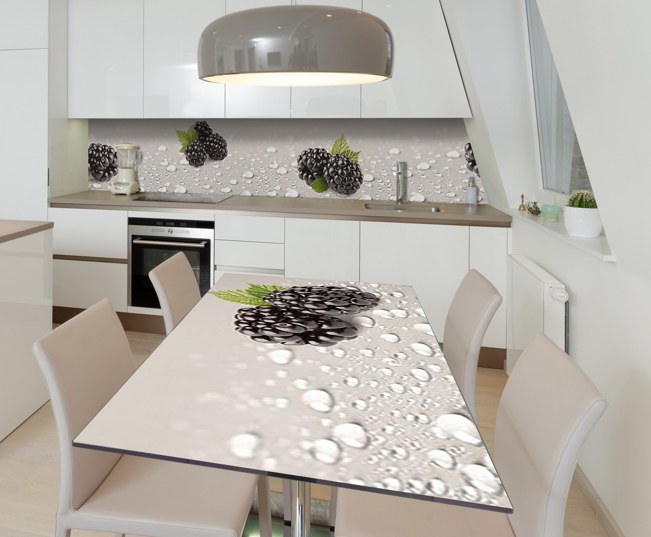 Описание Наклейка 3Д виниловая на стол Zatarga «Ежевика в росе» 650х1200 мм для домов, квартир, столов, кофейн, кафе