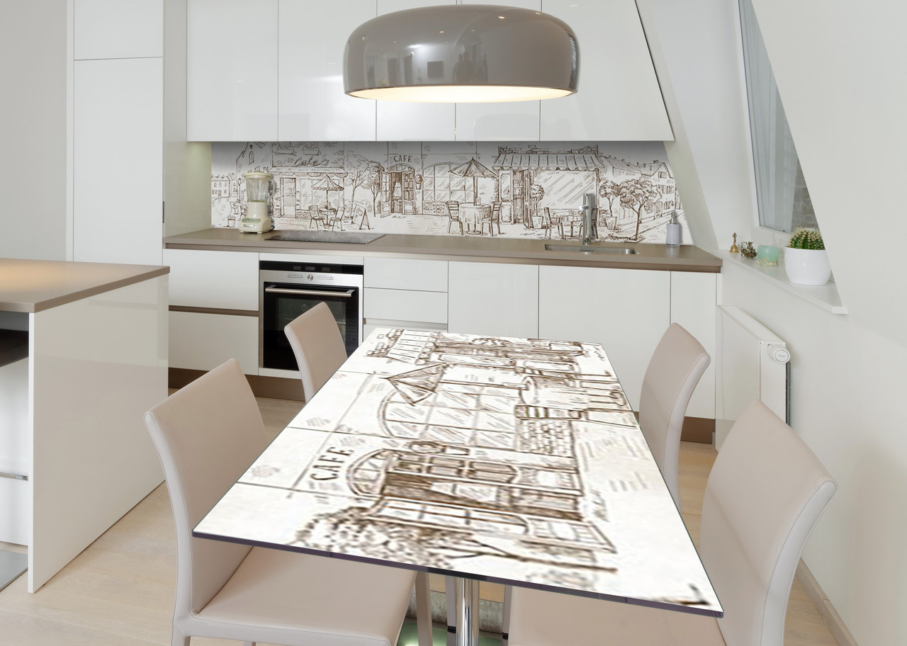 Описание Наклейка 3Д виниловая на стол Zatarga «Городские скетчи» 650х1200 мм для домов, квартир, столов, кофейн, кафе