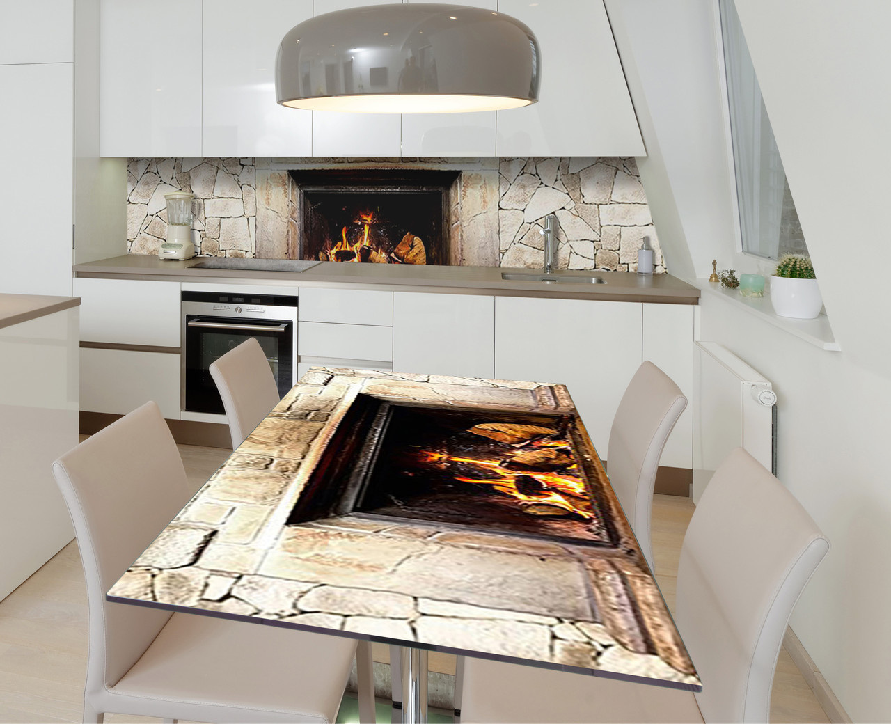 Описание Наклейка 3Д виниловая на стол Zatarga «Уютный камин» 600х1200 мм для домов, квартир, столов, кофейн, кафе
