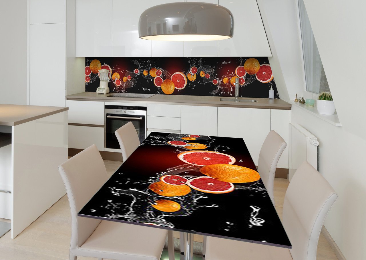 Описание Наклейка 3Д виниловая на стол Zatarga «Грейпфрутовые брызги» 600х1200 мм для домов, квартир, столов, кофейн,
