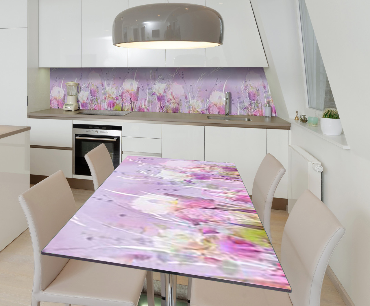 Наклейка 3Д виниловая на стол Zatarga «Лиловая картина» 650х1200 мм для домов, квартир, столов, кофейн, кафе