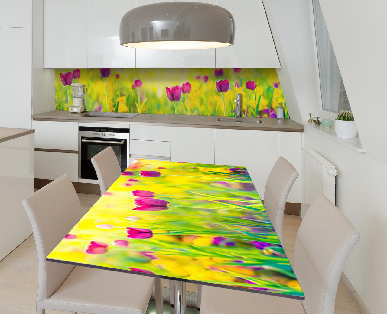 Описание Наклейка 3Д виниловая на стол Zatarga «Лиловые тюльпаны» 600х1200 мм (Z183333st)