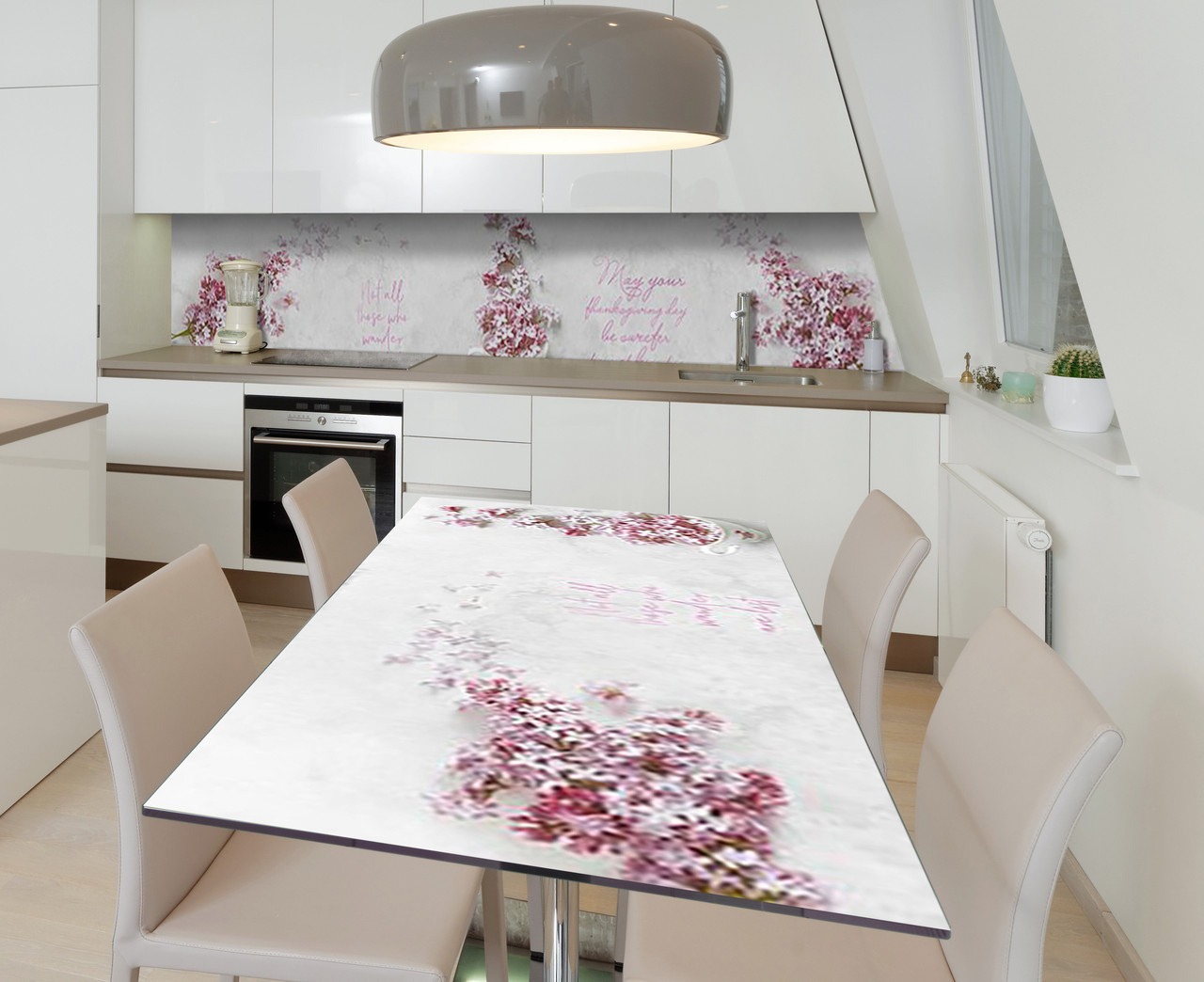 Описание Наклейка 3Д виниловая на стол Zatarga «Чашка сирени» 600х1200 мм для домов, квартир, столов, кофейн, кафе