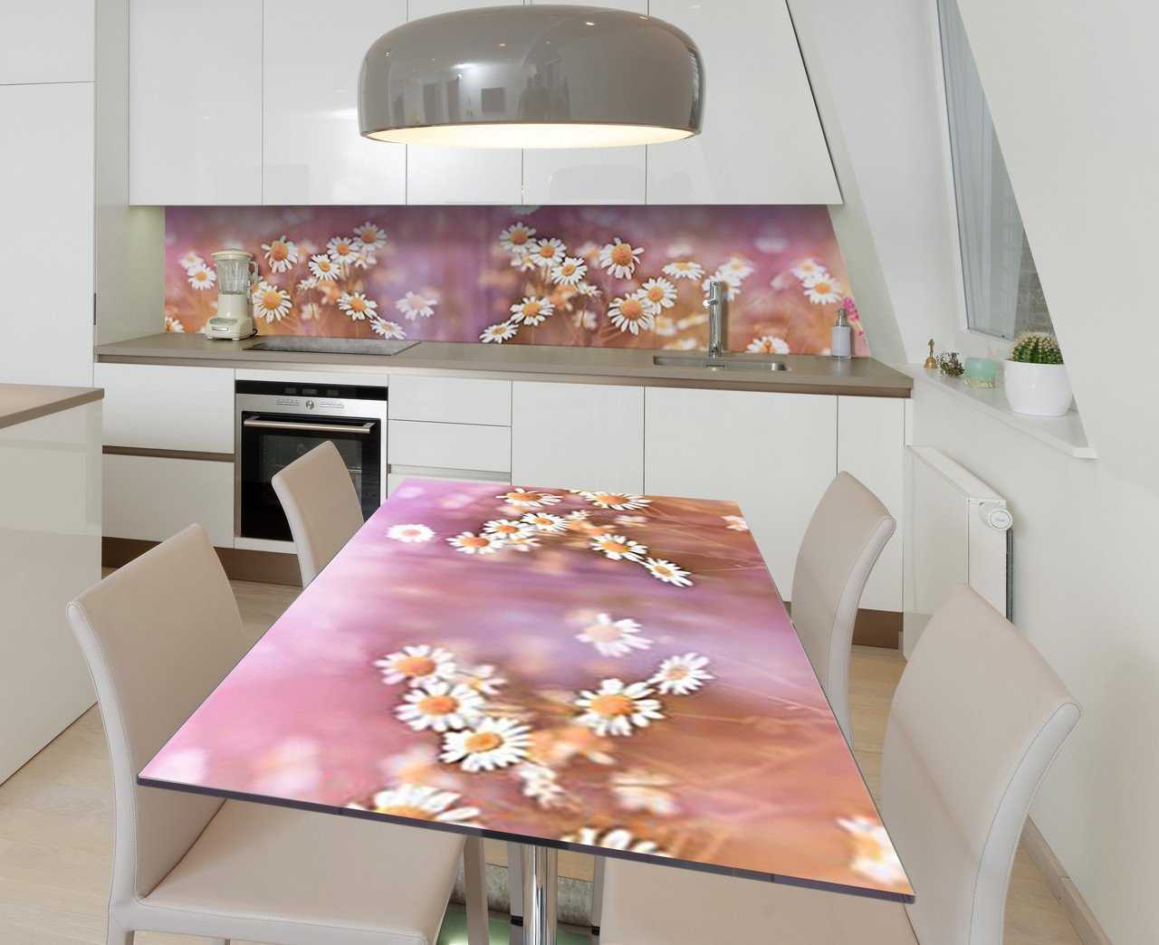 Описание Наклейка 3Д виниловая на стол Zatarga «Дикая ромашка» 600х1200 мм для домов, квартир, столов, кофейн, кафе