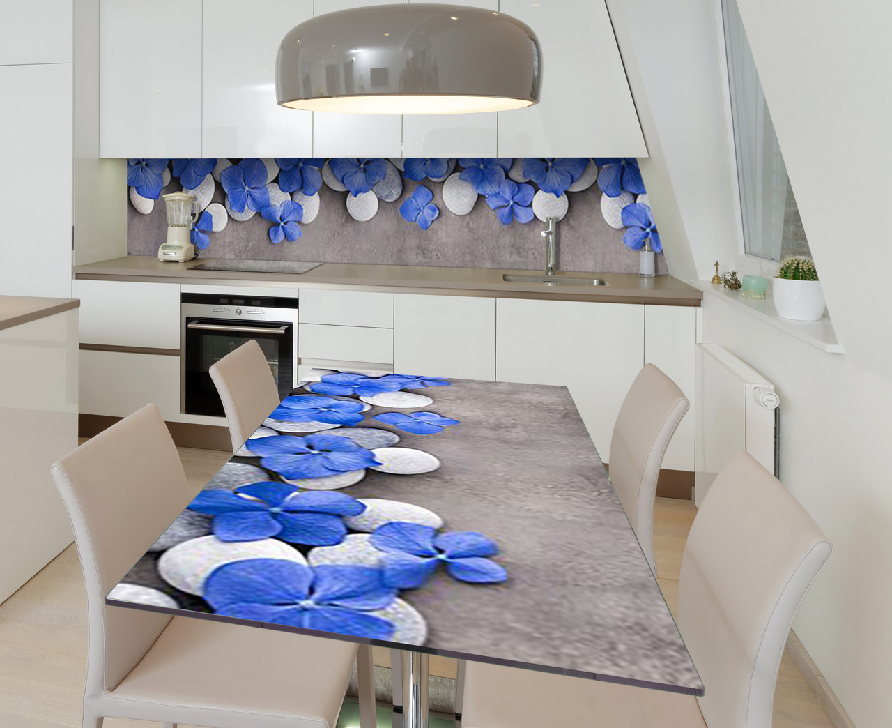 Описание Наклейка 3Д виниловая на стол Zatarga «Синяя гортензия на гальке» 600х1200 мм для домов, квартир, столов,