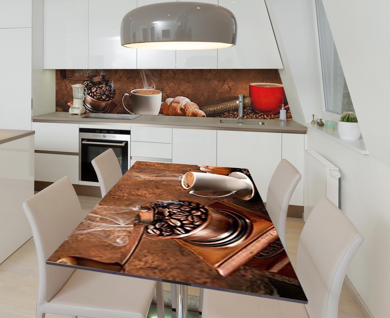 Наклейка 3Д виниловая на стол Zatarga «Круассан со свежим кофе» 650х1200 мм для домов, квартир, столов,