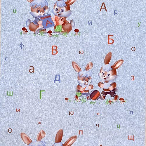 Характеристики товара Обои на бумажной основе простые Шарм 74-04 Зайчата голубые (0,53х10м.)