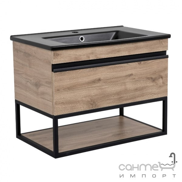 Подвесная тумба с раковиной Аква Родос Лофт Айрон Дуб Севилья Arte Black 100 дуб севилья, раковина матовая черная