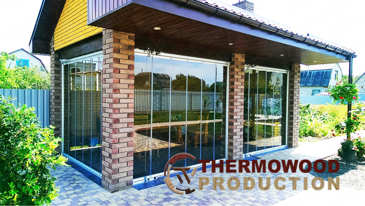 Верхнеподвесная полностью беспороговая система безрамного остекления MOMENTUM работает по принципу гармошки. Главными ее преимуществами является отсутствие порога, легкость эксплуатации и тихая работа системы в момент перемещения створок.
