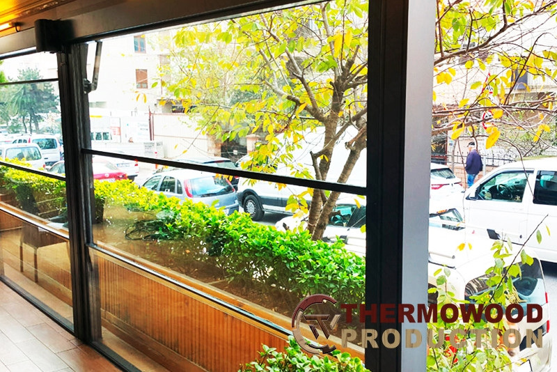 Предназначена для остекления сезонных площадок ресторанов, кафе, пиццерий и баров. Создания уютных застекленных беседок с мангалом, барбекю и печкой. Еще один вариант применения этой конструкции подходит для панорамного остекления на даче, в доме или коттедже, веранд частных домов.