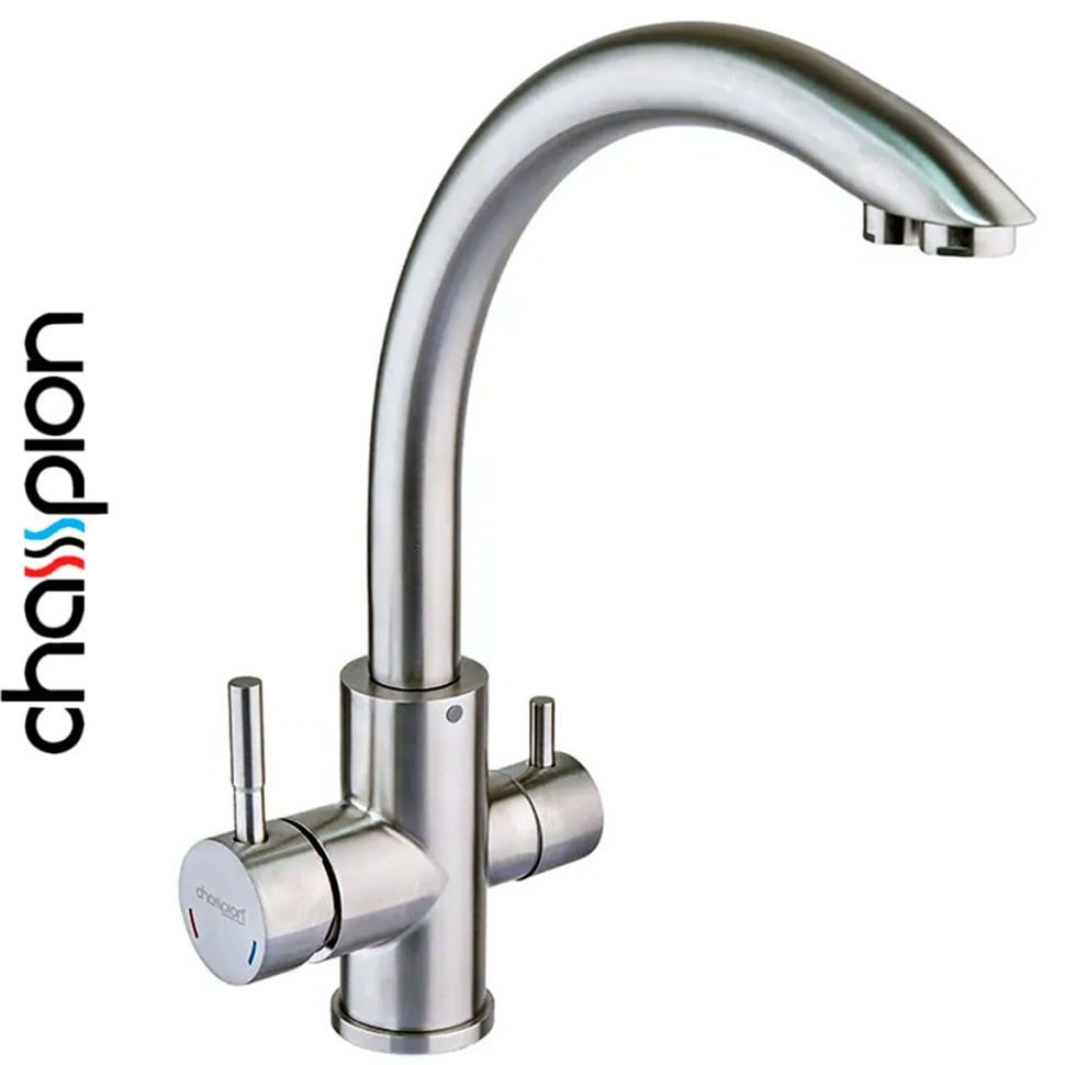 Змішувач із нержавіючої сталі картриджний для кухні з високим поворотним носом, комплектується гнучким підведенням 40 см, кріплення шпилька. Змішувач призначений для вбудованого монтажу на один отвір. Принцип змішування води – одноважільний.