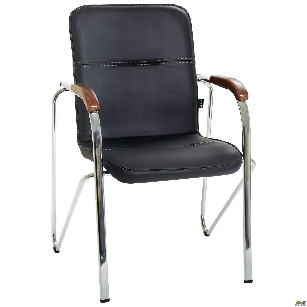 Офисный стул AMF Самба каркас-алюм подлокотники-орех кожзам-черный без канта