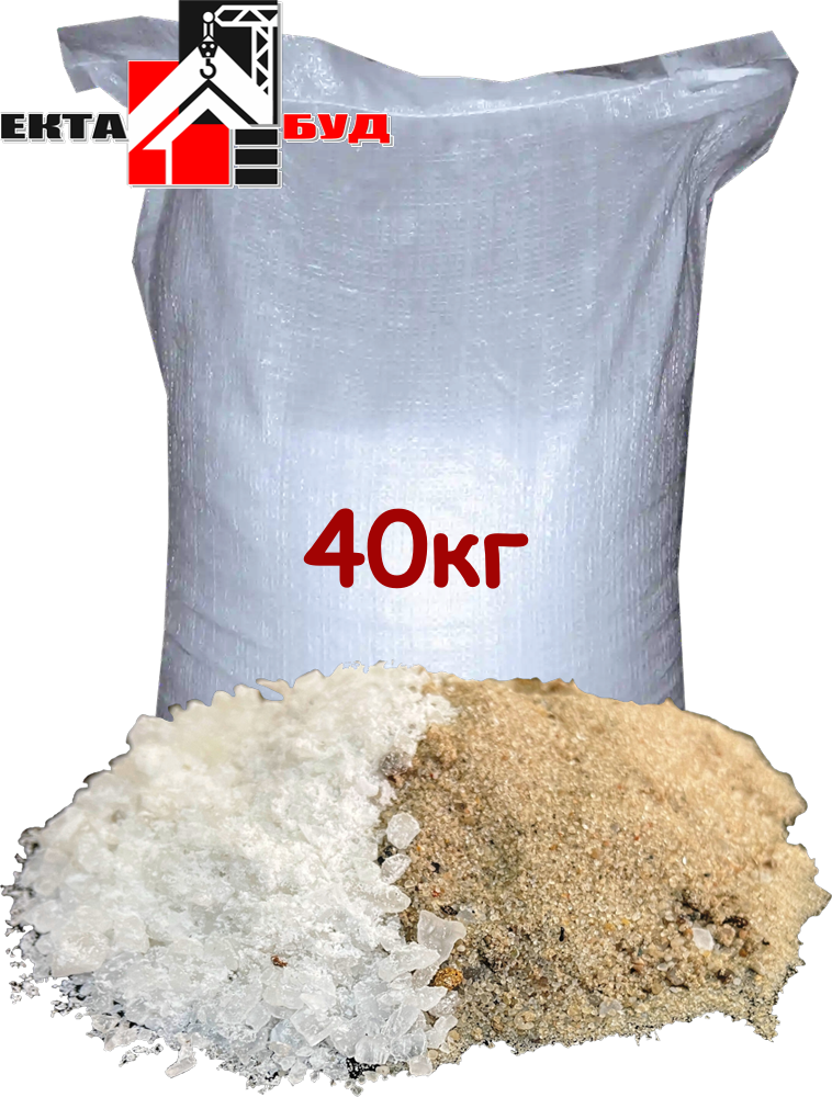 Характеристики товара Песчано-солевая смесь 15% в мешках по 40кг (пескосмесь ПСС песчано-солянная 6:1 фасованная) соль техническая для посыпания дорог и тротуаров