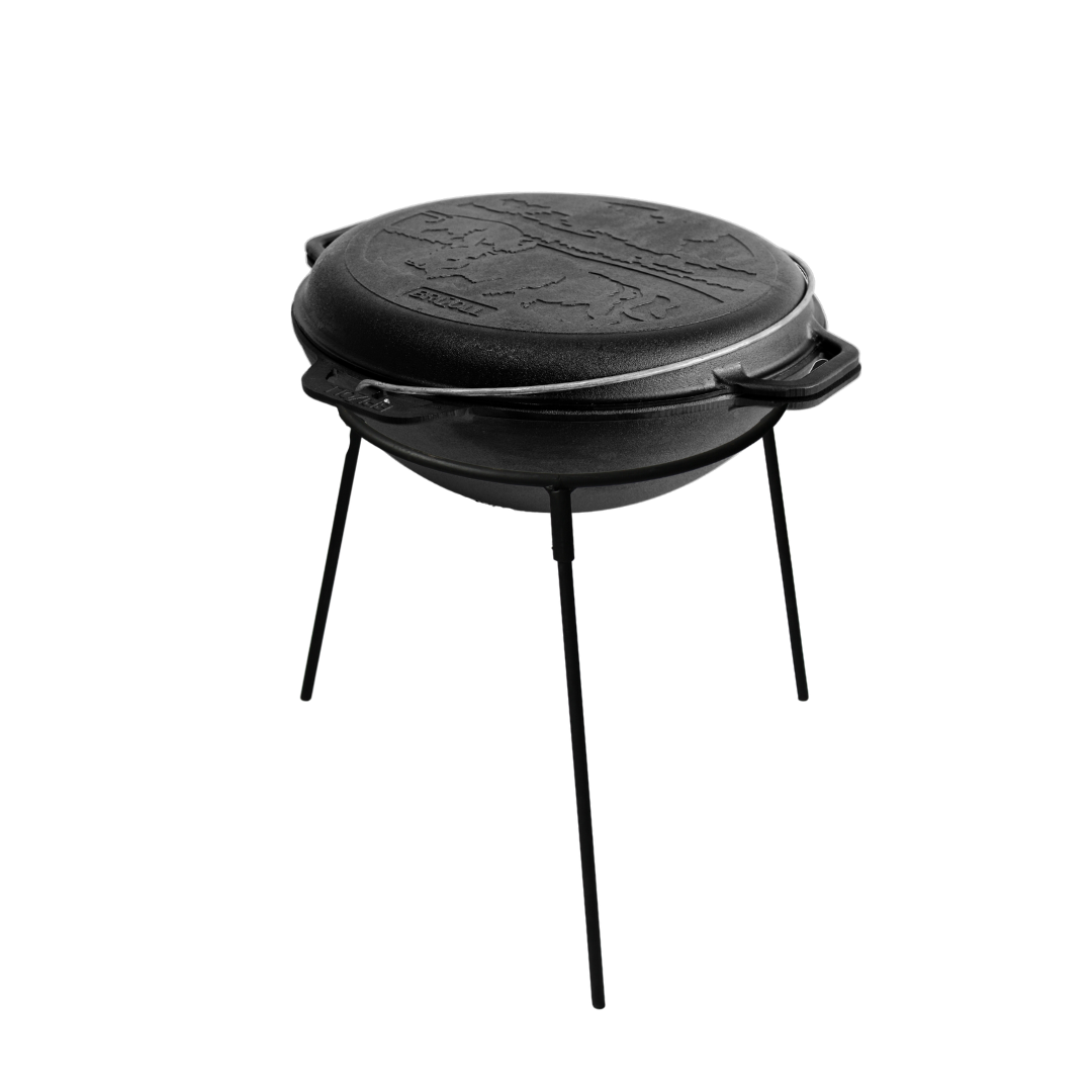 Характеристики товара Казан чугунный азиатский 15 л с крышкой-сковородой гриль и подставкой