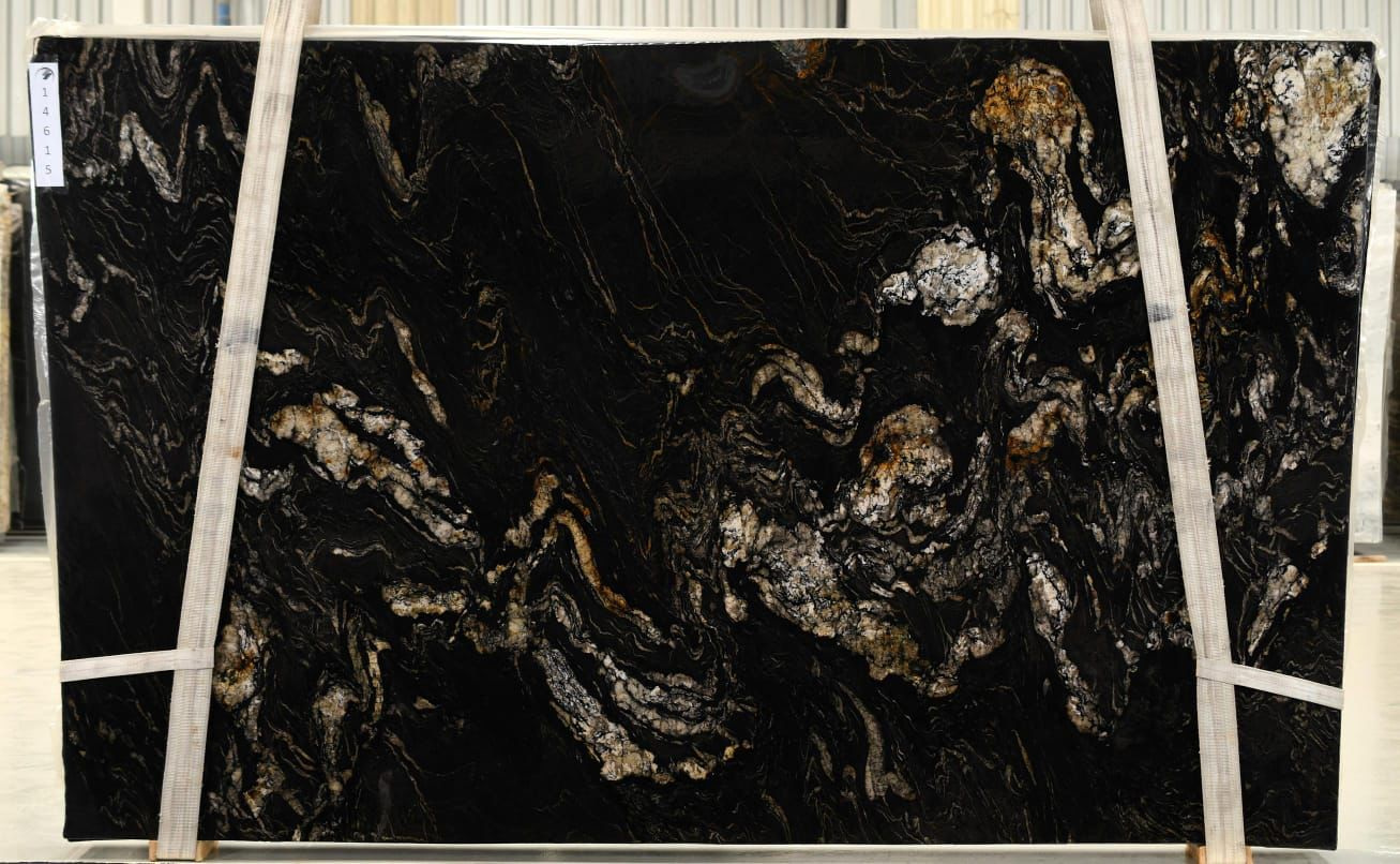 Гранит черный с золотисто-белыми прожилками, Бразильского происхождения. Обработка поверхности: полированный, шлифованный, брашированный. Для всех видов работ без ограничений.