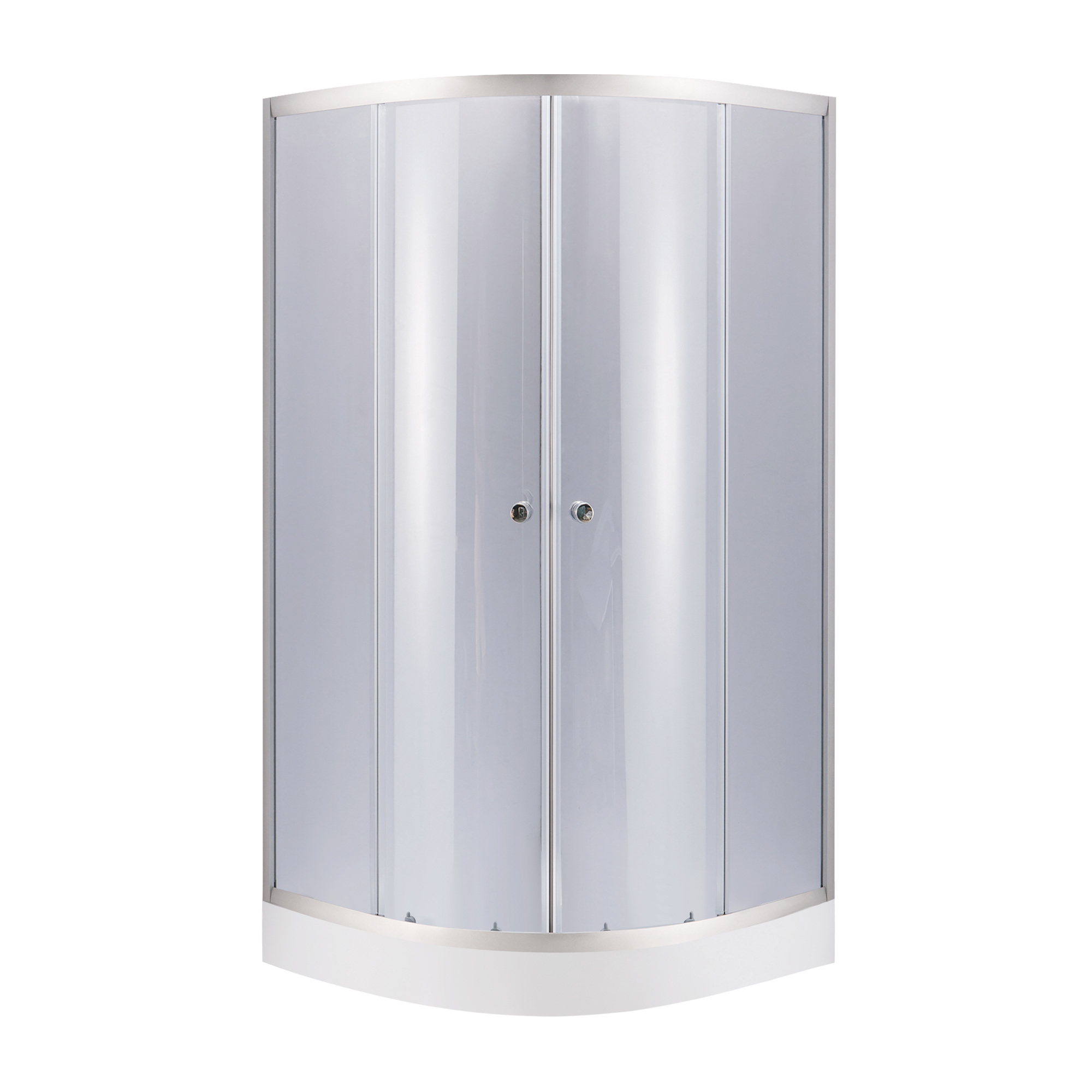 Она состоит из стильной стеклянной двери с ручками, обрамленной профилем, удобного акрилового поддона белого цвета.