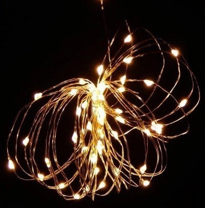 Стильна гірлянда виготовлена з тонкого сріблястого дроту, якому можна надати будь-якої форми. Це зовсім незвичайна новорічна гірлянда: на тонкому дроті блищать і переливаються краплинки роси — яскраві мінідіоди. Провід практично не видно, і за рахунок цього здається, що крапельки сяють самі по собі. Безпечна для дітей та свійських тварин, що дуже важливо! Гірлянда має напругу всього 4,5В, навіть якщо Ваш домашній улюбленець спробує перегризти провід, його не вдарить струмом.