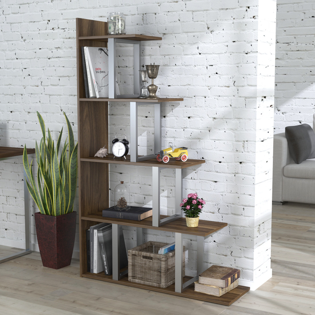 Стеллаж напольный Loft-Design L-160 серебряний метал с дсп орех