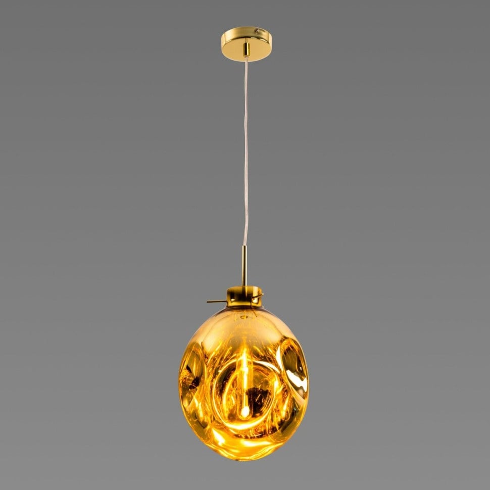Плафон цієї люстри має золотистий колір і круглу форму, що надає йому вишуканості та неперевершеності. Він виготовлений зі скла, що створює неймовірну гру світла та додає ефекту розсіювання.