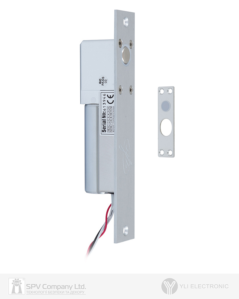Электроригельный замок для врезного монтажа. Предназначен для надежного электромеханического запирания деревянных, металлических и профильных дверей в составе систем контроля доступа. С использованием монтажной пластины может быть установлен также на суцільноскляні двері.