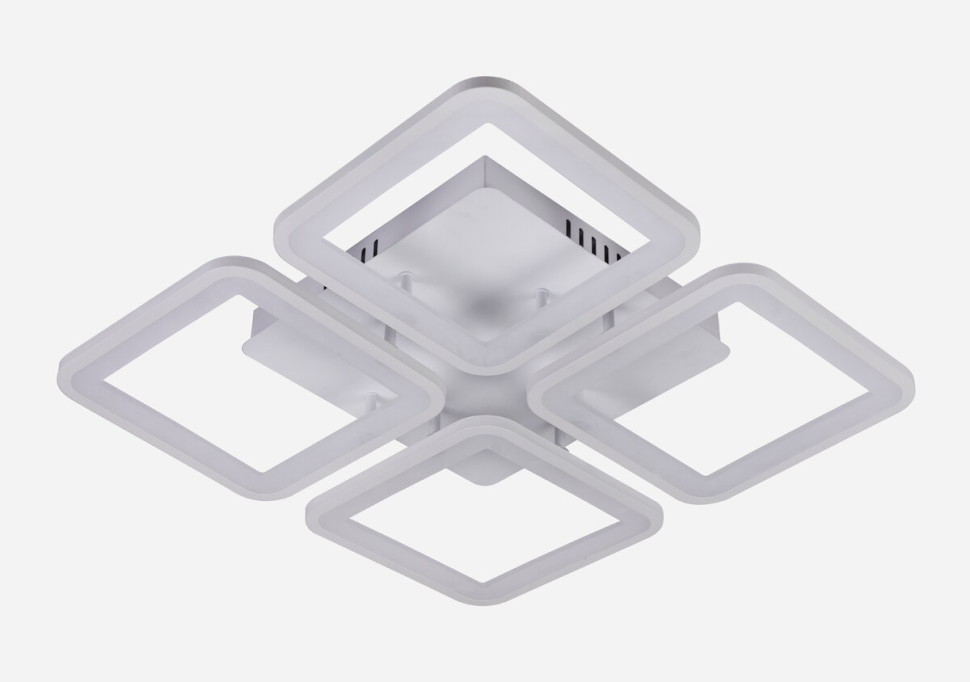 Эта люстра – настоящее воплощение стиля: каркас из металла белого цвета придает помещению элегантность. Четыре плафона из акрила, также в белом цвете, квадратных форм, создают уникальный и эффектный вид.