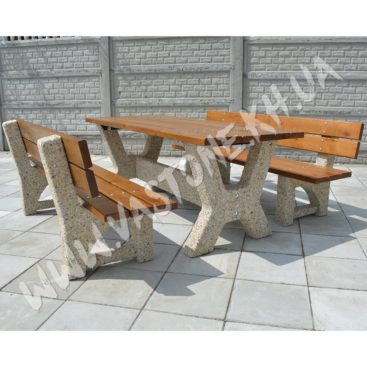 Садовый стол со скамейками «Гарден - Верона" - это НОВИНКА! нашего производства, замечательный вариант для беседки и всевозможных зон отдыха на свежем воздухе. Ножки комплекта произведены по технологии вымытого бетона, основным материалом которых является натуральный природный камень: гранит, галька, базальт, мрамор. Стильный и изящный стол с лавочками комплектуются деревянным брусом в местах сидения, с деревянной столешницей, окрашенные и покрытые лаком дощечки долговечны, которым не страшны климатические изменения, жара и холод. Разновидности лавочки/ стола по брусу: Порода дерева: БРУС ОЛЬХА +6190 грн; БРУС ЯСЕНЬ (под заказ) Цвет дерева - ОРЕХ (цвет бруса можно изменить под заказ от 3 шт.) Купить стол с лавочками в Харькове или по всей Украине не составит труда, мы подберем для Вас удобный вариант доставки, способ оплаты и при необходимости выполним монтаж под ключ. Звоните, с радостью ответим на все вопросы.