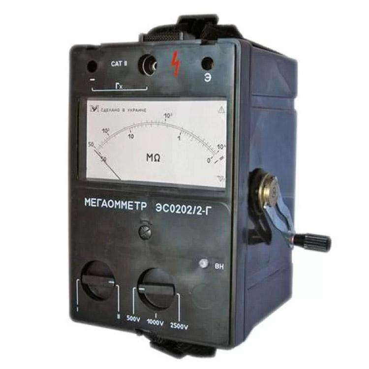 Омметр ЭС0202/2-Г (0-10000МОм) 500, 1000, 2500В Мегомметр применяется, с целью измерения сопротивления. Прибором можно определить сопротивление как электрической изоляции проводов так и трансформаторов и других устройств, при условии отсутствия в них напряжения.