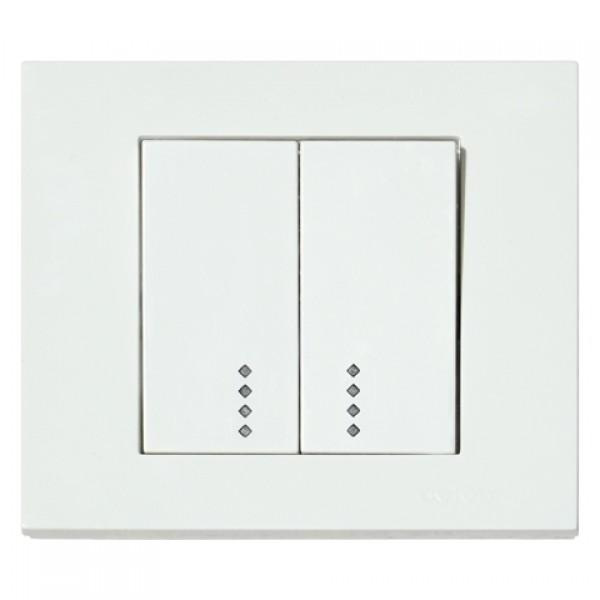 Выключатель 2-клавишный с подсветкой кремовый GRANO