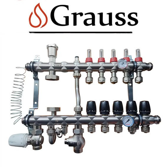 Коллектор Graussдля системы "ТЕПЛЫЙ ПОЛ" узел в сборедля для системы, с нижним подключением, из нержавеющей стали.