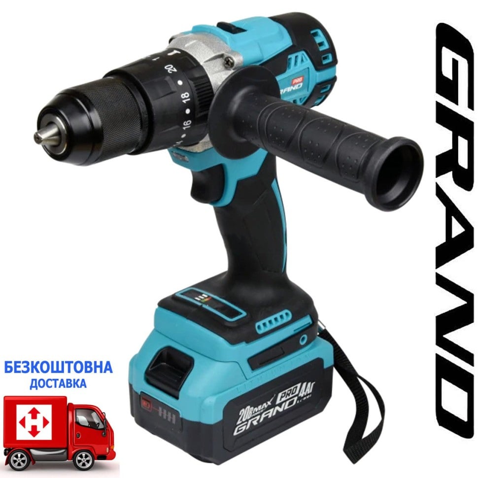 Шуруповерт акумуляторний ударний безщітковий Grand ДА-20/13 UBL батарея 2*(20В, 4Аг)