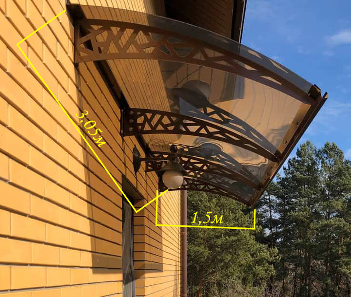 Характеристики товара Металический сборный навес (козырек) над дверью Dash'Ok 3.05x1.5 м Hi-tech, тем-серый, мон 3 мм, бронза