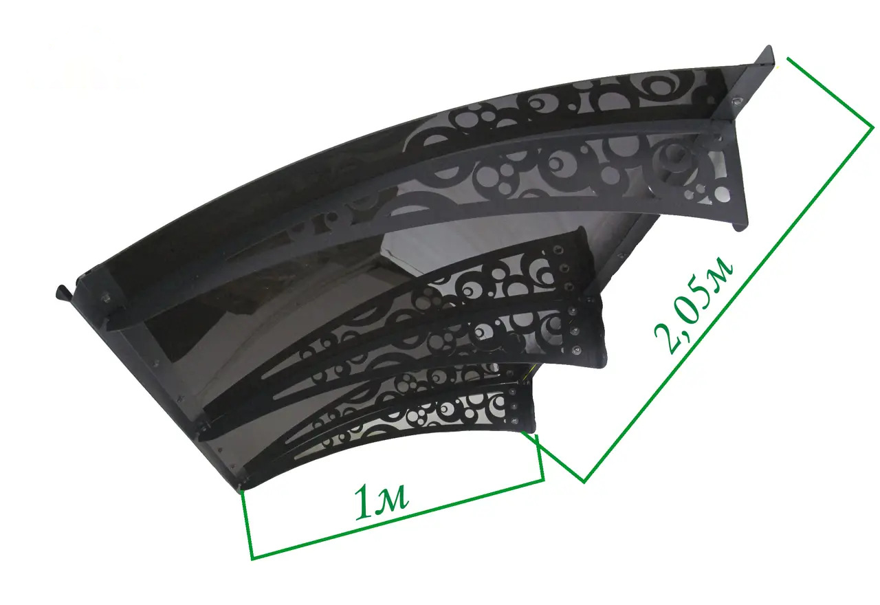 Металический сборный навес (козырек) над дверью Dash'Ok 2.05x1 м Style, тем-серый, сот 6 мм, прозр