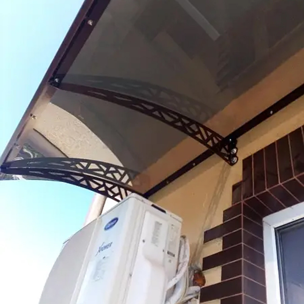 Изготовлен из высококачественного поликарбоната, этот навес является прочным и устойчивым к ультрафиолетовым лучам, что обеспечивает длительный срок службы без выгорания или повреждений. Поликарбонат также имеет высокую прозрачность, позволяя достаточно естественного света проникать к входу.