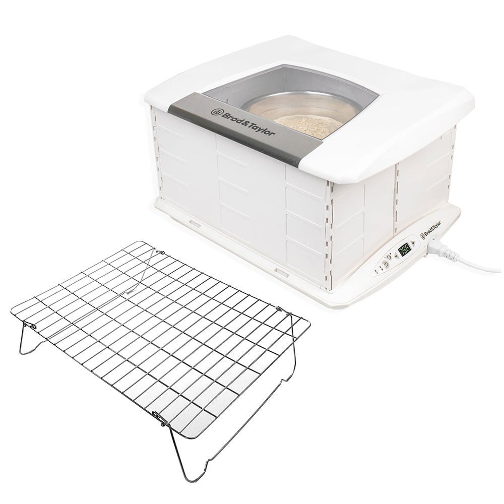 Складана шафа для розстоювання тіста Brod&Taylor FP-205 VDE + полиця з неіржавкої сталі FP-205 VDE — це унікальна складана шафа для розстоювання тіста, темперування шоколаду, приготування йогуртів, приготування улюблених страв у глиняних горщиках за оптимальної температури 70-90°C, підігрівання їжі (ферментації їжі) і навіть як мультиварка для певних рецептів і багато іншого від американського виробника Brod&Taylor. Пристрій створює ідеальні умови для бродіння тіста (розстоювання тіста), приготування квасу та кисломолочних продуктів, зрощування чайного та кефірного гриба і це далеко не вага можливості цього дивовижного приладу. У складеному вигляді шафа поміщається всередині стандартної стільниці, у зібраному стані вміщує два кошики для тіста, 12 склянок для йогурту або цілу каструлю квасу. Водночас пристрій вагою 4,3 кг має споживану потужність усього 200 Ватів, утримує температуру в діапазоні 21-90 °C з точністю до градуса, підтримує типову вологість 60-80% і може працювати в заданому режимі тижнями без зупинок! Велике оглядове вікно дає змогу спостерігати за приготуванням продуктів, а спеціальна місткість із водою допомагає утримувати потрібний рівень вологості. Brod&Taylor FP-205 VDE зроблений з екологічно чистих і безпечних матеріалів: інертного поліпропілену, неіржавкої сталі та алюмінію. Ви можете використовувати шафу так часто, як це потрібно, без ризику для здоров'я. Матеріали не містять токсичних речовин, зокрема й бісфенолу А (BPA FREE). Ідеальне тісто для якісного хліба Секрет смачного хліба — правильно підняте тісто його стійке. Для бродіння природних і звичайних дріжджів потрібні особливі умови: постійна вологість повітря в діапазоні 60-80%, температура 28-32 °C. Добитися таких параметрів в умовах кухні неможливо: стандартна температура повітря в приміщенні — 22 °C, вологість змінюється від 50 до 90%. Усередині духовки тісто дозріти не може, її мінімальна робоча температура 50 °C. Це удвічі вище за необхідну температуру та занадто гаряче для тіста. Складана шафа FP205 Brod and Taylor PRO створює контрольоване середовище, точно таке, як у професійних кондитерських і пекарнях. Вона ідеально підходить для дріжджового (бездрожевого з використанням природних дріжджів) бродіння й дає змогу готувати корисний, смачний хліб. Встановлюйте нижчу температуру, щоб тісто дозрівало довше, підвищуйте температуру для якісного бродіння в холодні дні. Готуйте корисну кисломолочну продукцію Важливий елемент здорового харчування — корисні бактерії. Магазинні кефіри та йогурти кисломолочної мікрофлори практично не містять. Єдиний спосіб отримати дійсно корисний продукт — приготувати його своїми руками. Внутрішнього об'єму шафи FP205 Brod and Taylor вистачить для 12 склянок йогурту, кефіру або сметани. Користь таких продуктів величезна: стабілізується мікрофлора кишківника, кишківник отримує захист від гнильних бактерій, підвищується рівень імунітету та стійкість до хвороб, підвищується метаболізм, зникають зайві кілограми. Отже, ви в домашніх умовах зробите смачний корисний наповнений правильними бактеріями кефір, йогурт, сметану та будь-який кисломолочний продукт. А ще ви зможете готувати освіжний квас! Смачні десерти тепер не проблема Домашній шоколад — смачні та корисні ласощі. Приготування шоколаду вручну займає 30 хвилин і вимагає постійної вашої присутності та перемішування кон