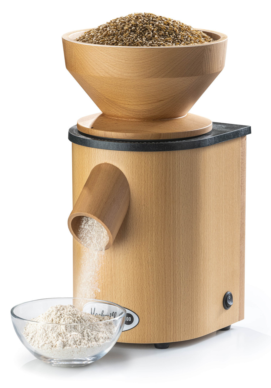 Електричний жорновий млин Mockmill Lino 100 Простота в експлуатації Простота очищення Безступінчасте регулювання налаштувань від дуже тонкого до грубого Продуктивність (потужність помелу) близько 100 г м'якої пшениці за хвилину. Підходить для безглютенового борошна Міцний промисловий двигун Жорновий механізм, що складається з корундо-керамічних жорен (ø 90 мм) Бункер (пшениця): 1300 г Матеріал корпусу: Деревина та Arboblend® Розміри: 380 x 242 x 208 мм Вага: 7,8 кг Швидкість обертання 1300 об/хв Потужність: 360 Вт Напруга: 220В/230В Клас захисту: 1 Довжина кабелю: 150 см Комплектація: Млин з конусною кришкою, інструкція з експлуатації Гарантія: 2 роки для промислового використання, 12 років для приватного використання Вироблено в Німеччині Mockmill Lino 100 - це електричний жорновий млин, який призначений для швидкого і простого помелу зернових продуктів у домашніх умовах. Цей млин має ряд переваг, які роблять його дуже зручним у використанні. Mockmill Lino 100 має міцний промисловий двигун, який забезпечує високу продуктивність млина (близько 100 г м'якої пшениці за хвилину). Жорновий механізм складається з корундо-керамічних жорен діаметром 90 мм, що забезпечує точний і рівномірний помел зерен. Однією з особливостей цього млина є його безступінчасте регулювання налаштувань, яке дозволяє легко налаштувати млин на помел від дуже тонкого до грубого. Вона також підходить для помелу безглютенового борошна, що робить її ідеальним вибором для людей, які страждають на целіакію. Mockmill Lino 100 має компактний розмір (380 х 242 х 208 мм) та легкий (7,8 кг), що робить його зручним для використання та зберігання. Це дуже легко керувати та обслуговувати, а також легко очищається після використання. У комплекті з млином йде конусна кришка та інструкція з експлуатації. Гарантія на млин становить 2 роки для промислового використання та 12 років для приватного використання. Mockmill Lino 100 вироблена в Німеччині і є відмінним вибором для тих, хто хоче отримувати свіже та якісне борошно в домашніх умовах.