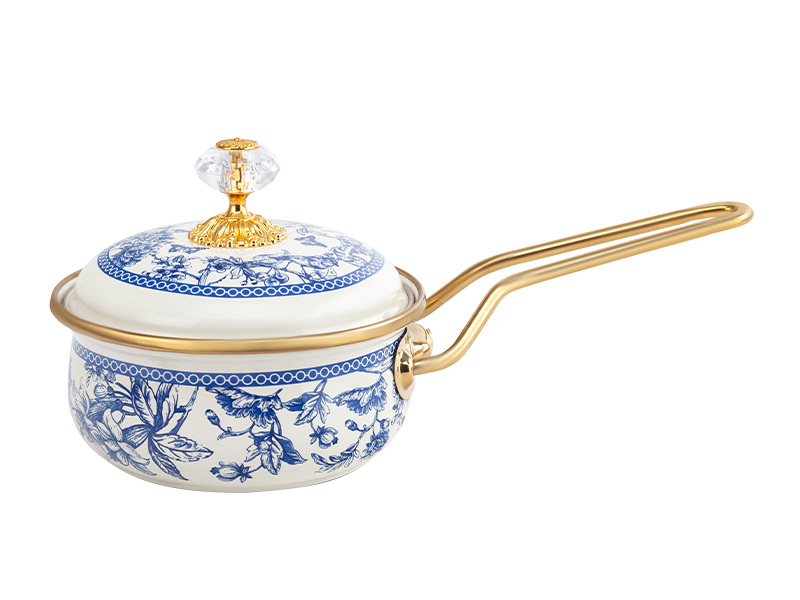 Описание Ковш эмалированый "BUTTERFLY" Elmani с крышкой, 0,9 л, 14 см х 31 см