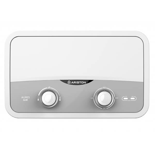 Ariston Aures SF 5.5 COM – невеликий за розміром водонагрівач проточного типу, який підключається до однієї точки паркану вода. Модель має потужний нагрівальний елемент, який миттєво прогріває воду до потрібної температури. Нагрівач води можна встановити поруч із місцем розміщення душу, оскільки він має захист від попадання вологи та води, а також вимикач заземлення. Бойлер дуже легкий, тому його легко встановлювати. Завдяки компактному розміру прилад розміщується у вузьких нішах. Конструктивно виробник передбачив фронтальний доступ до внутрішніх компонентів, що дозволяє здійснювати швидке та легке обслуговування. Для заміни ТЕНу у водонагрівачі не потрібно зливати воду з бака. Модель отримала химерний італійський дизайн, що робить прилад не лише побутовим, а й дизайнерським штрихом в інтер єрі. Відмінні риси моделі: Живиться від однієї точки забору води Незвичайний та стильний італійський дизайн Компактні розміри (всього шириною 29 см) дозволяють розміщуватися в обмеженому просторі Мала вага (пристрій важить лише 1300 грам) сприяє легкому монтажу Високий клас енергоефективності Захист від пилу та води класу IP25. Встановити бойлер можна навіть у душовій кабіні Усі контролери знаходяться на фронтальній частині Доступ до всіх внутрішніх вузлів здійснюється з передньої частини бойлера Комплектація включає аксесуар для кранів та душову насадку. Багаторівневий захист. Термостат з подвійним вимикачем не допускає ошпарювання Чотири установки потужності: низька, середня та висока. Два світлодіоди показують який із нагрівальних елементів активний Висока якість матеріалів